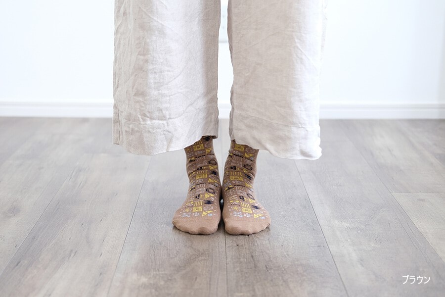 小さなTile(タイル)を敷き詰めたような模様がかわいい一足です。