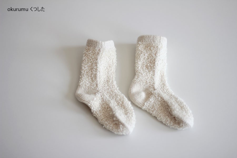 オーガニックコットンと空気をふんだんに織り込んだ、やさしい肌心地のベビー用くつした。