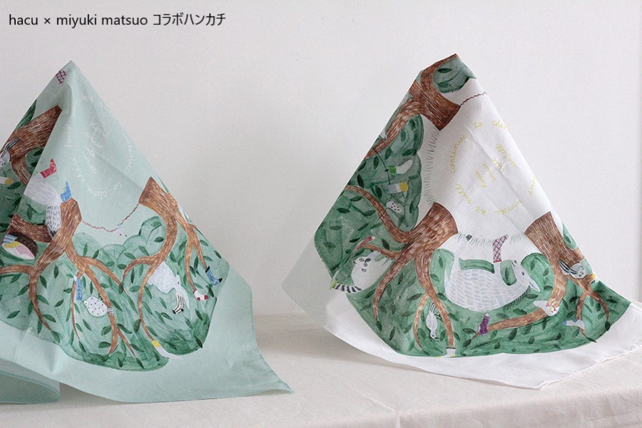 実際にあるhacuの靴下をモチーフに、松尾さん独特の絵のタッチで、温かみのあるやさしい雰囲気に仕上がっています。