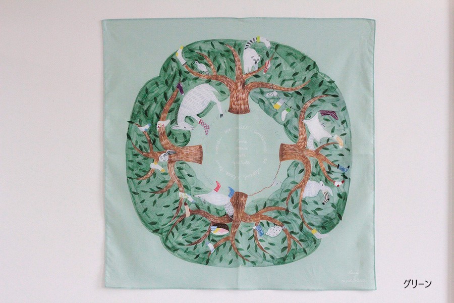 縦横53各のやや大判のハンカチですので お弁当を包んだりはもちろん 首に巻いたりもできます。素材はコットン100%です。