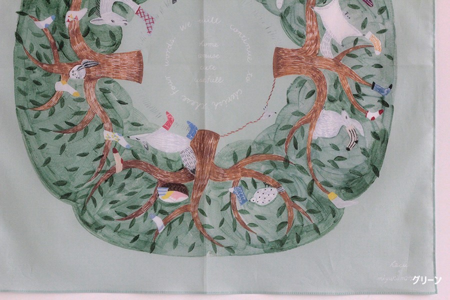ここは森の中のhacuのお店。しっぽに履いてみるもの、耳にかぶってみるもの、 両手に持って嬉しそうに飛び回るもの、 くちばしで肌触りを確かめているもの。。
