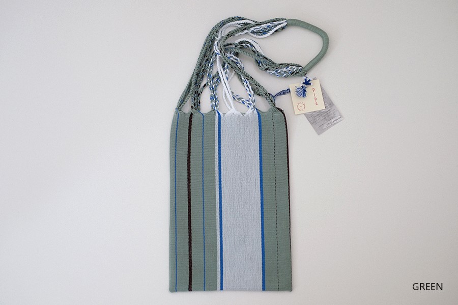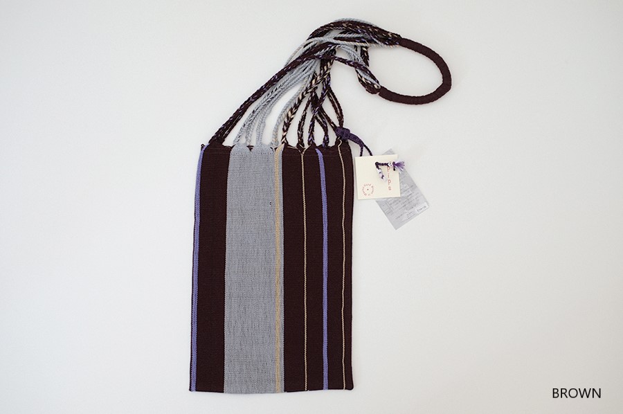 ハンモックのような持ち手部分は、生地を織る際に縦糸を長く残し、一本一本手作業でロープ編みが施されています。