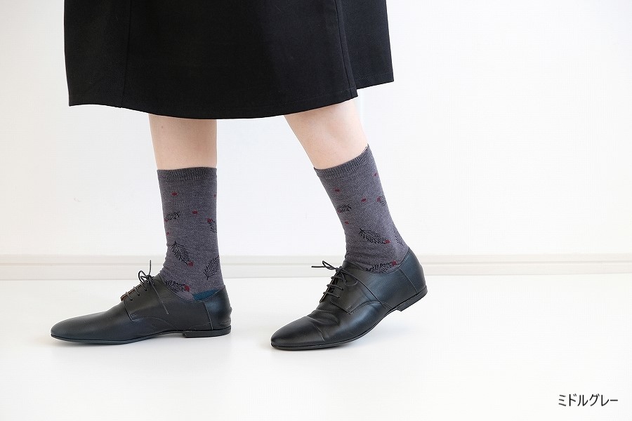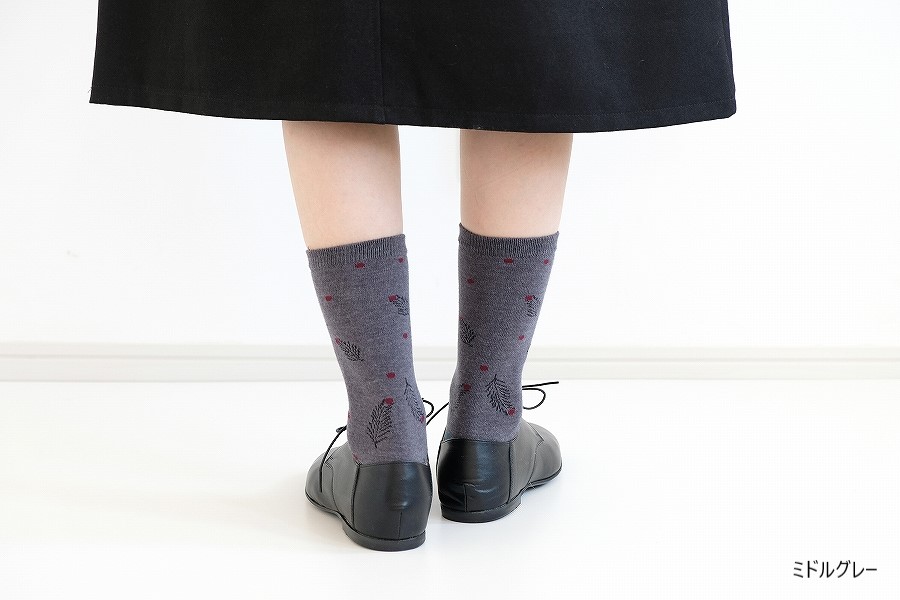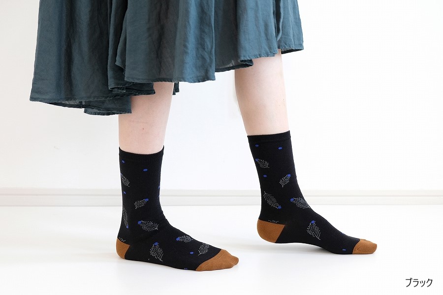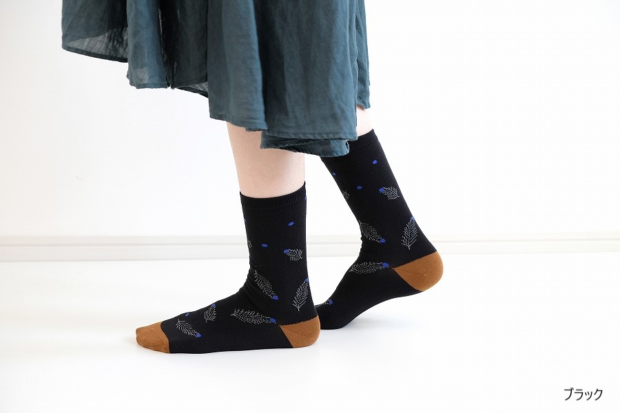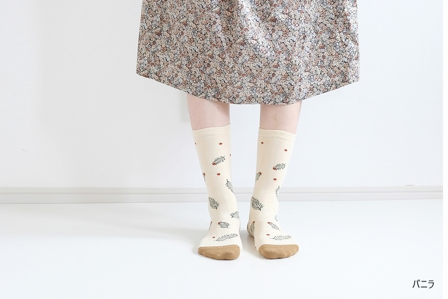 モチーフは冬のイメージですが、素材は綿混なので一年中履いていただけます。