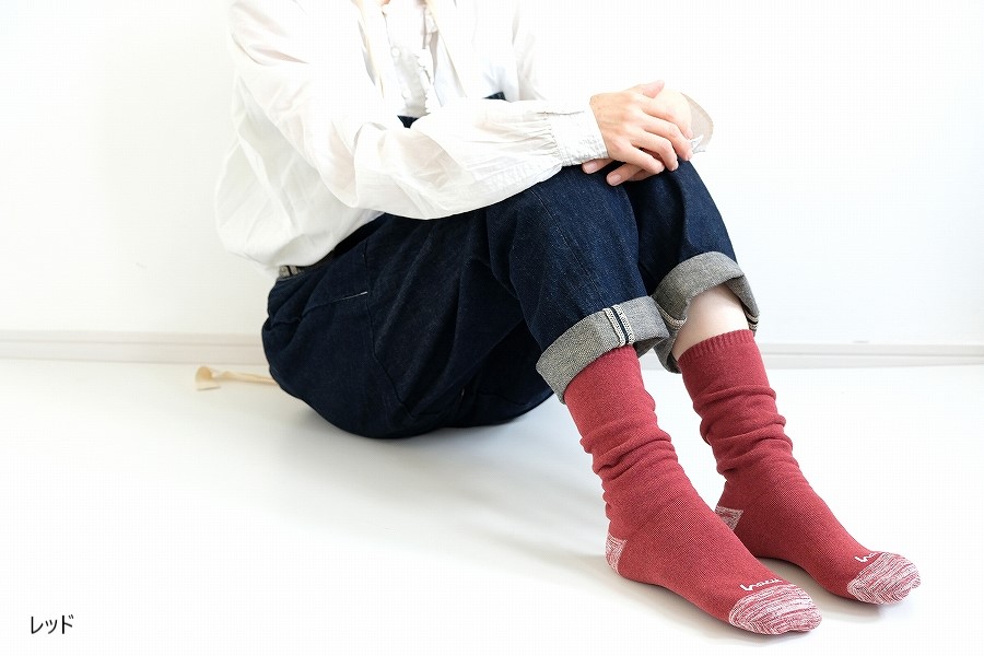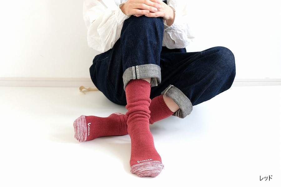 昨年までのアクリル・ウールの、ふんわりゆるーいルームソックスタイプとは逆タイプで、イメージで例えるなら「スイートポテトと芋けんぴ」くらいのハードさの違いで、カチッとしたイメージです。