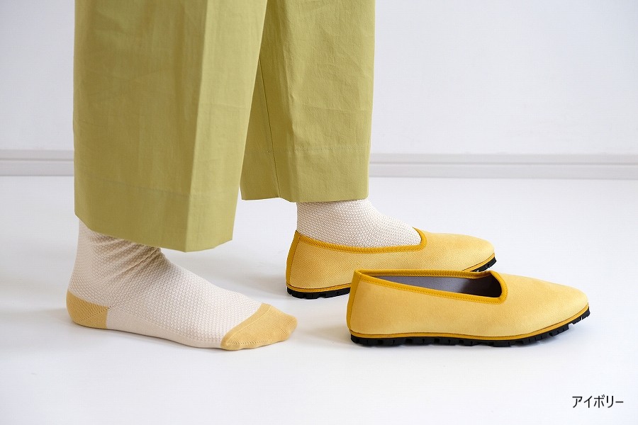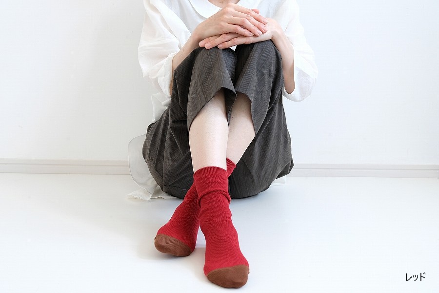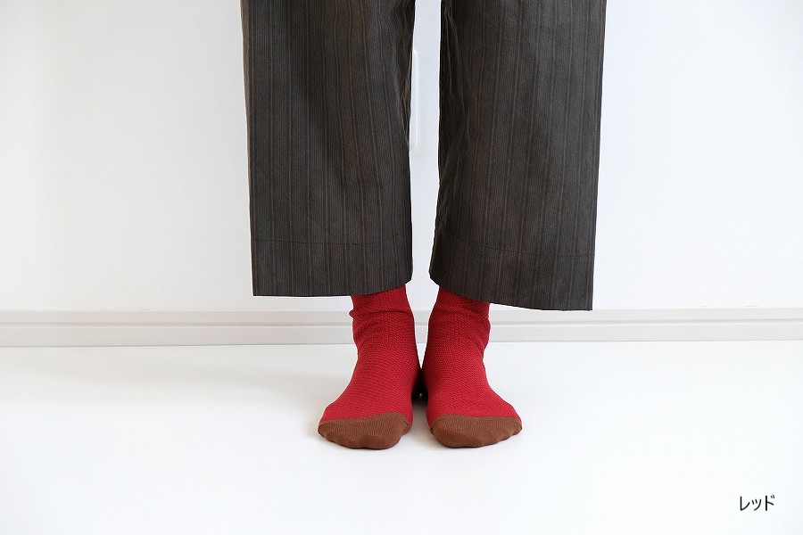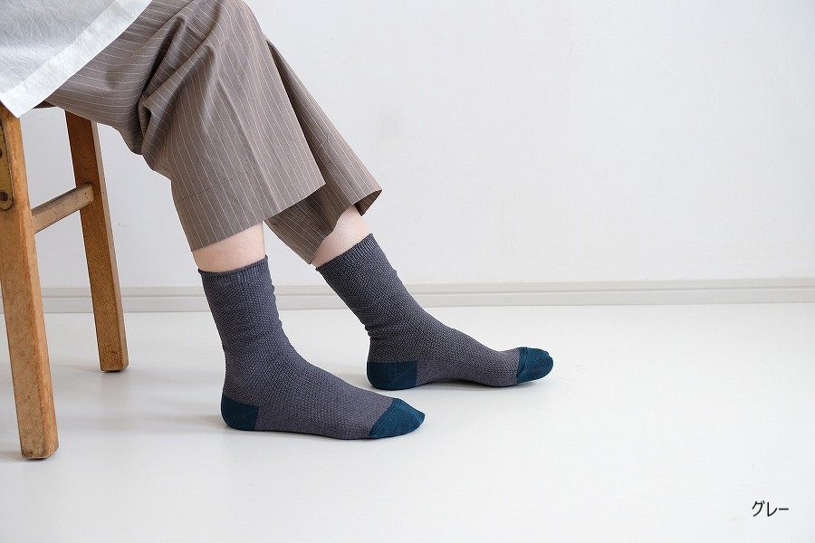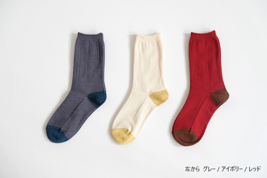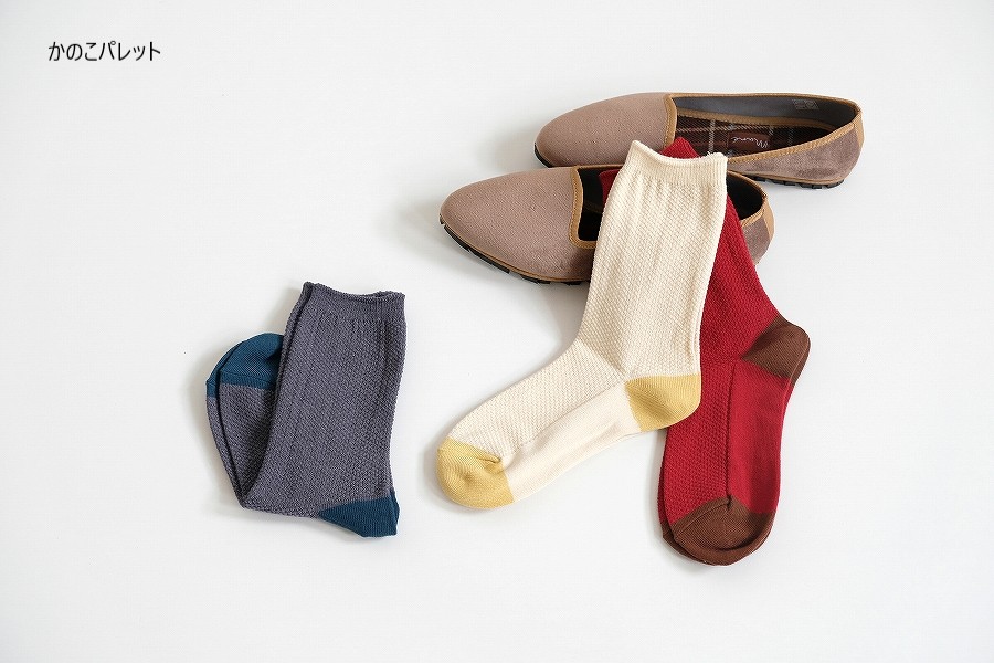 凹凸のある目の細かい「鹿の子編み」で仕立てた、やさしい履き心地のソックス「かのこパレット」。