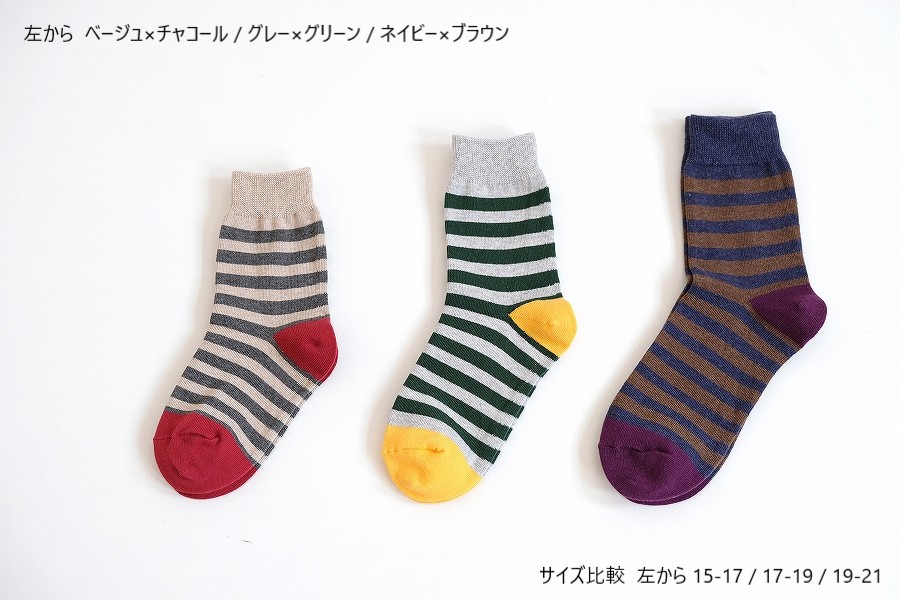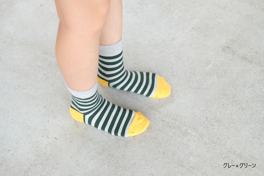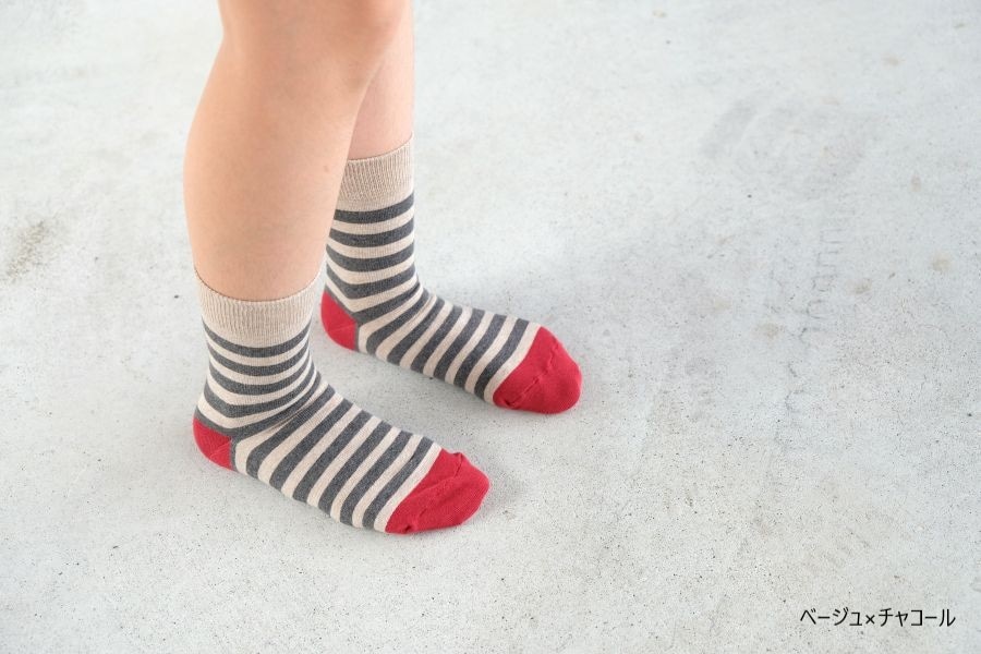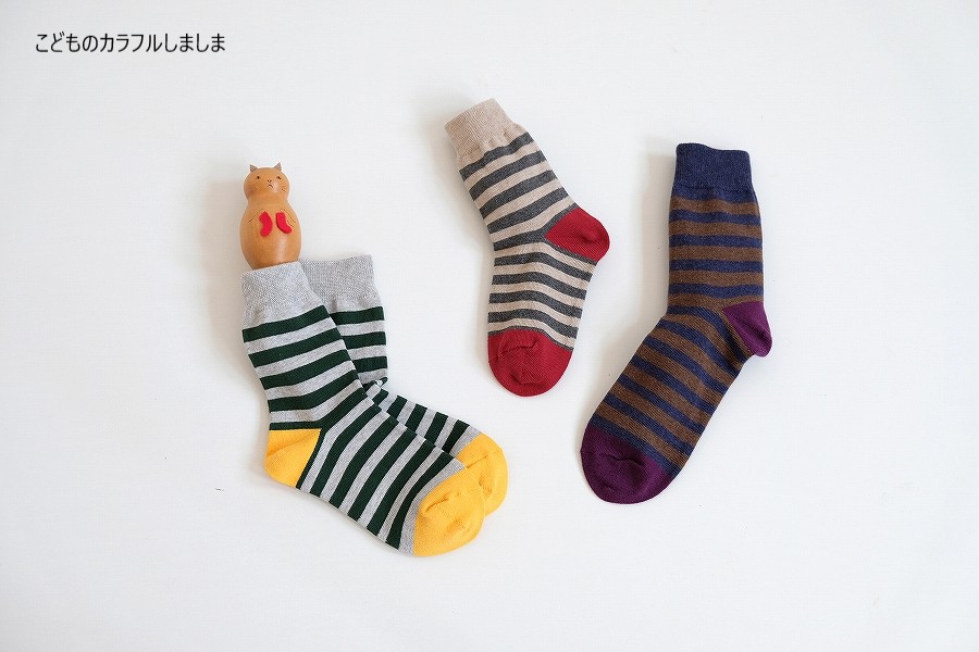 大人顔負けの配色で仕上げた、こどものカラフルなしましまソックス。