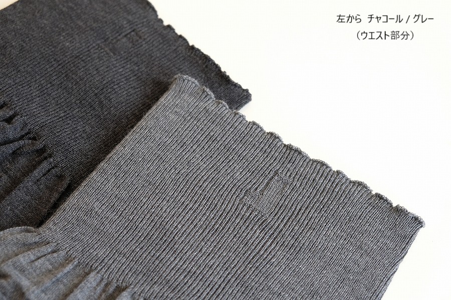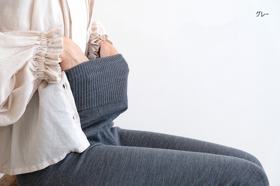 12分丈同様、股上は長めでお腹まわりをすっぽり包み込みますが、お腹部分のリブは、おへそが隠れるくらいの丈ですので、着ている洋服にひびきません。