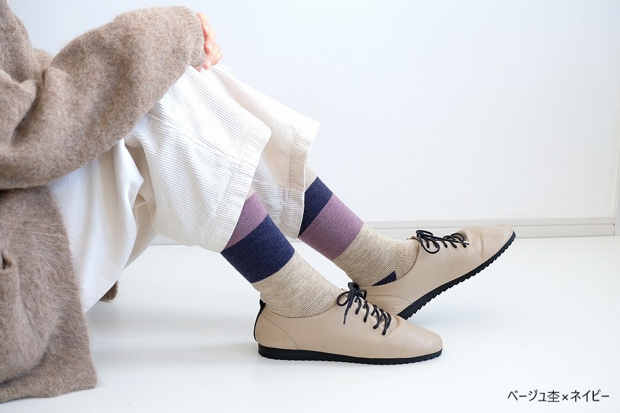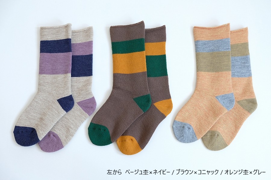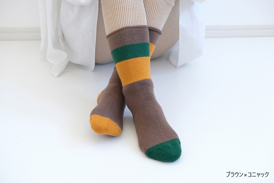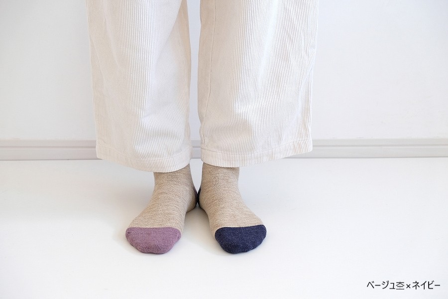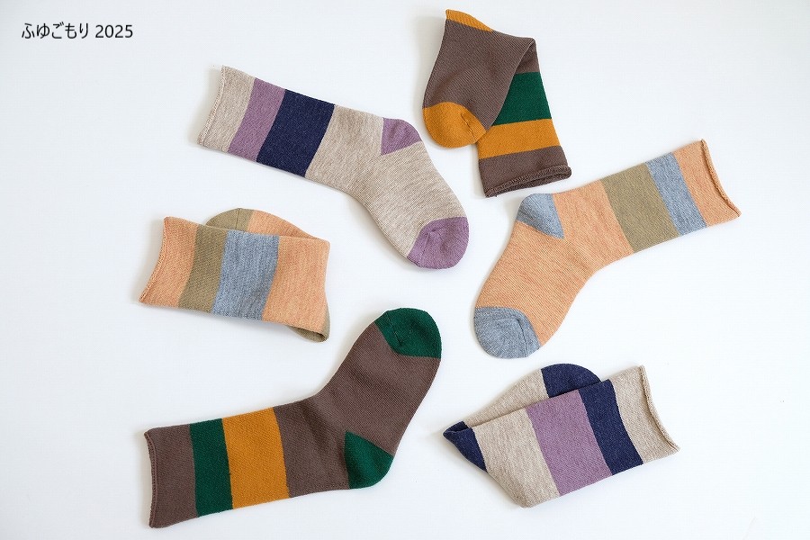 2025年モデルは、「冬を味方にする 左右ちがいのぬくもり」をデザインテーマとして、左右で異なるカラーリングで、総パイル×裏起毛の贅沢な仕立てと、履き口にゴムが無い「no gomu」仕様で編み立てています。