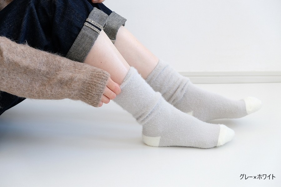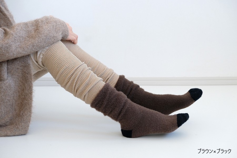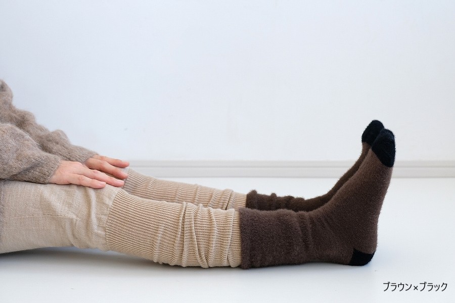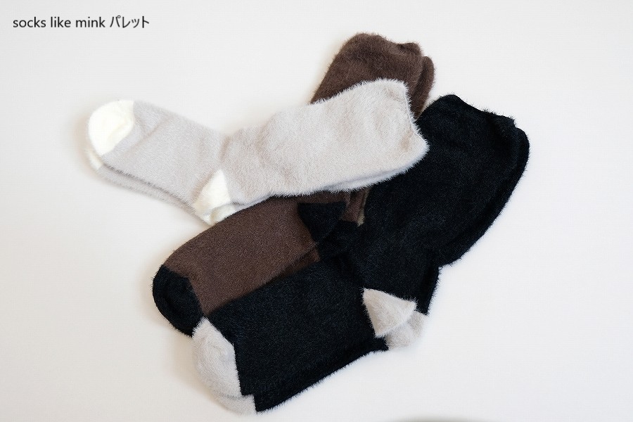 ミンクのような上品な光沢と柔らかさをもつ、モールヤーン糸で編み立てた靴下、名前は「socks like mink パレット」。