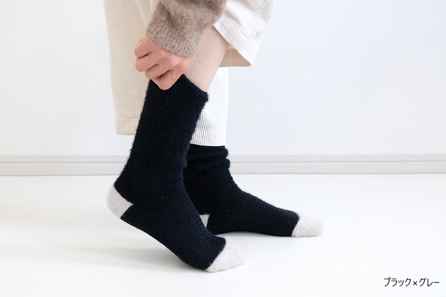 滑らかな肌触りであたたかいので、普段使いはもちろん、おやすみ前のリラックスタイムにも履いていただける、寒い冬の色々なシーンで活躍する一足です。