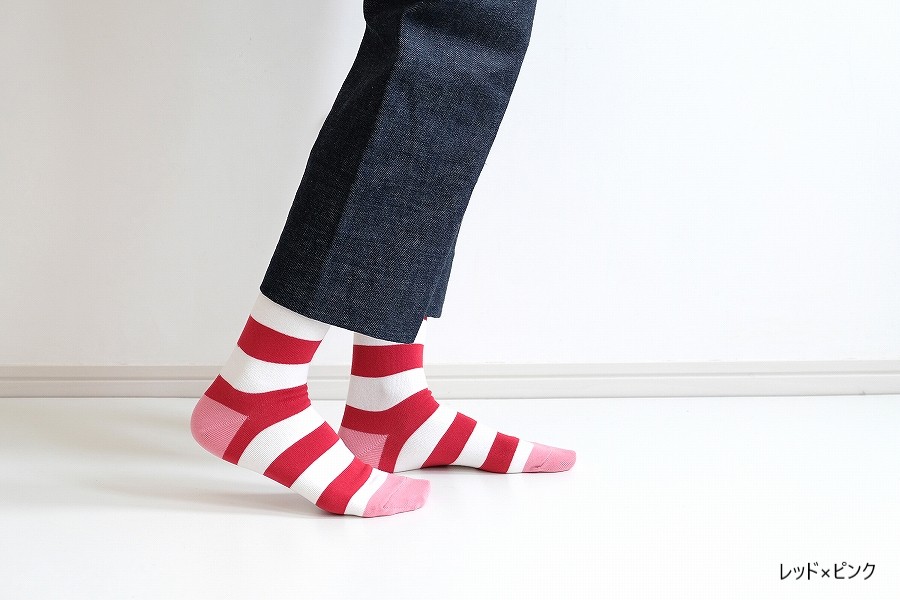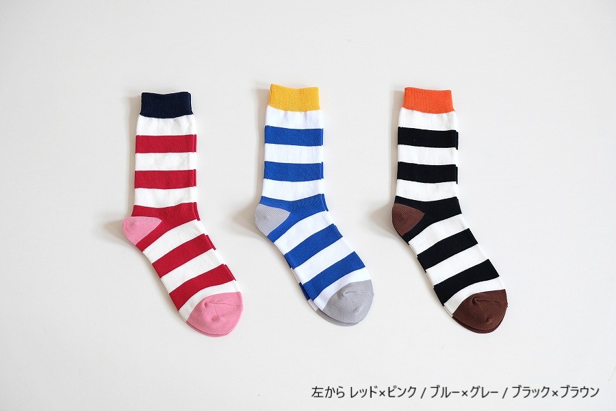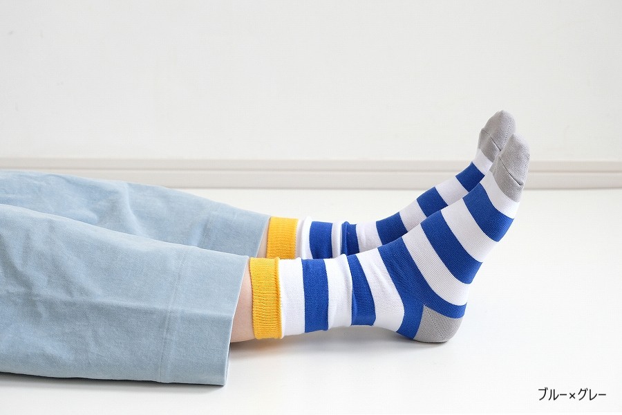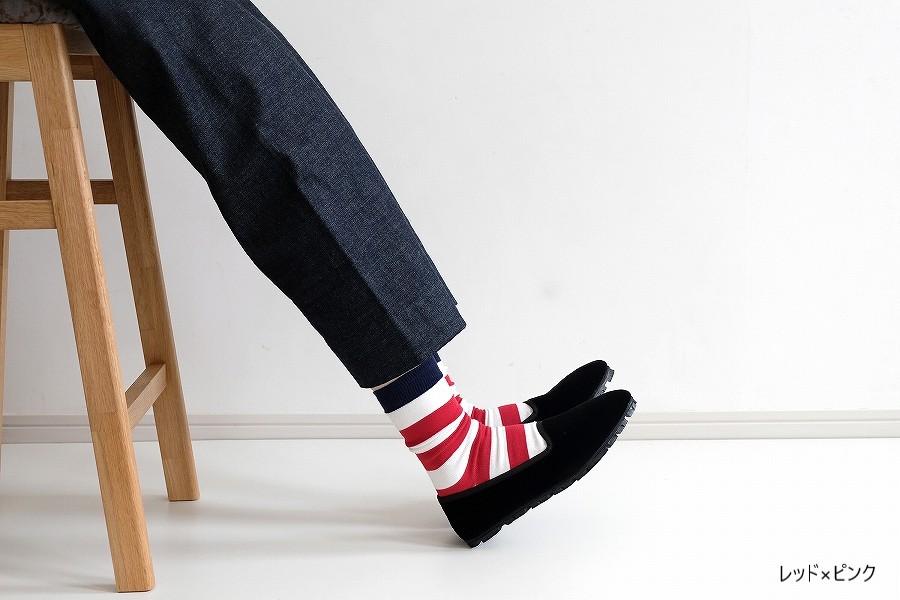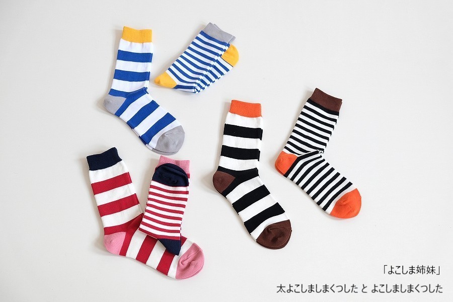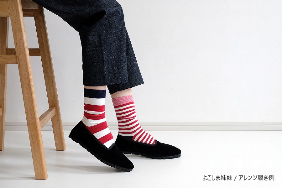 「太よこしましまくつした」と「よこしましまくつした」を、片方ずつミックスしたアレンジ履きも楽しいかも。
