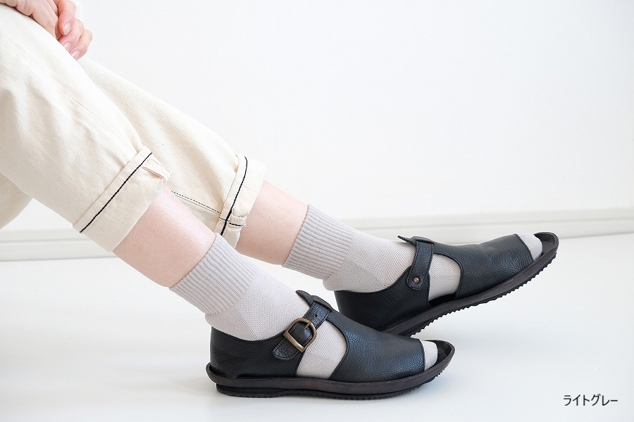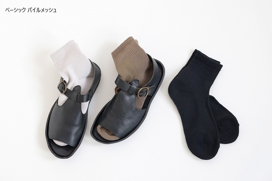 甲部分は、シンプルなメッシュ編みで、通気性よく、季節を問わず快適に履いていただけます。